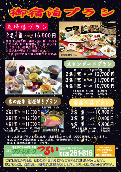 グループでのご旅行に、家族団欒や日帰り入浴大小の宴会や会議・研修に皆様のご利用を従業員一同お待ちいたしております。