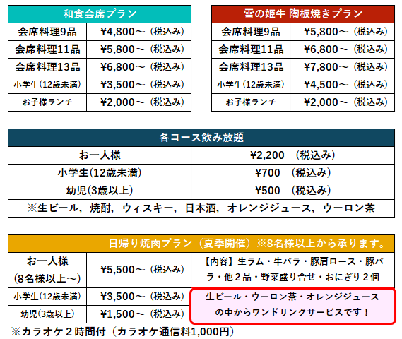 ※各プラン代金には、入湯税・消費税を含んでおります。